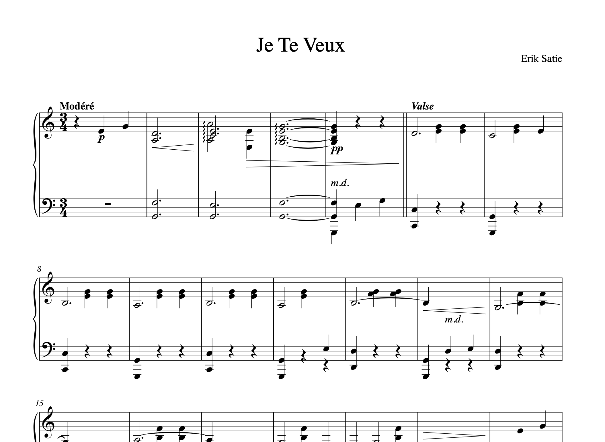 [클래식] 에릭 사티(E. Satie) - Je te veux (쥬떼브 | 난 당신을 원해요) 피아노 2단 악보 무료 공유 PDF